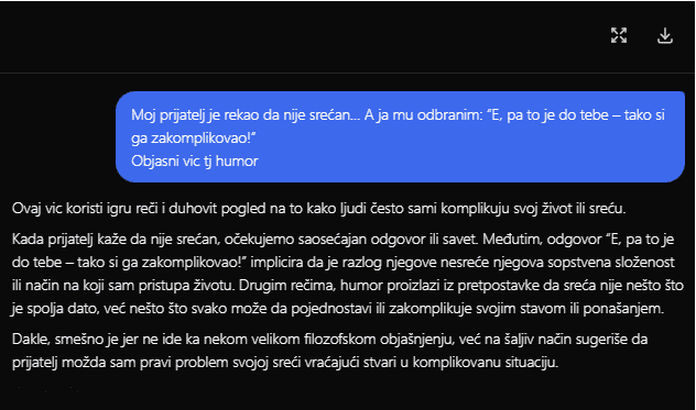 Pitao sam prvi vic da mi chatbot objasni i dobio sam odgovor: